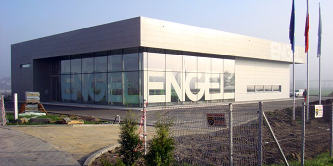 Im Jahr 2007 wurde auch in Polen ein neues Vertriebs- und Servicezentrum der Firma Engel, einem der führenden Unternehmen im Kunststoff-maschinenbau mit Hauptsitz in Schwertberg und weltweit zahlreichen Niederlassungen, in konstruk-tivem Stahlbau errichtet. Das Konzept des über-geordneten Daches, welches aus einem auf Stahl-säulen ruhenden Raumtragwerk besteht, wurde beibehalten. Es verbindet den zweigeschoßigen Büro- und Schulungstrakt über eine von West nach Ost verlaufende innere, von oben belichtete Erschließungsachse mit einem großzügigen, Ausstellungs-, Lager- und Nebenräume auf-nehmenden Baukörper im Süden.