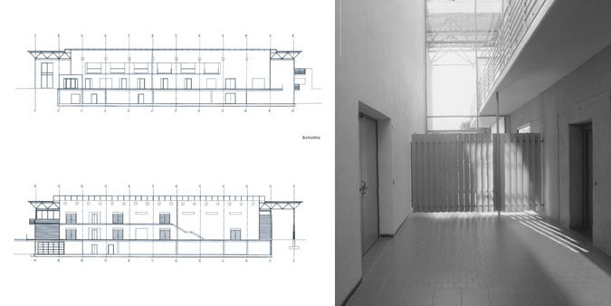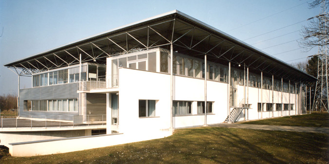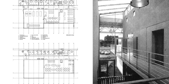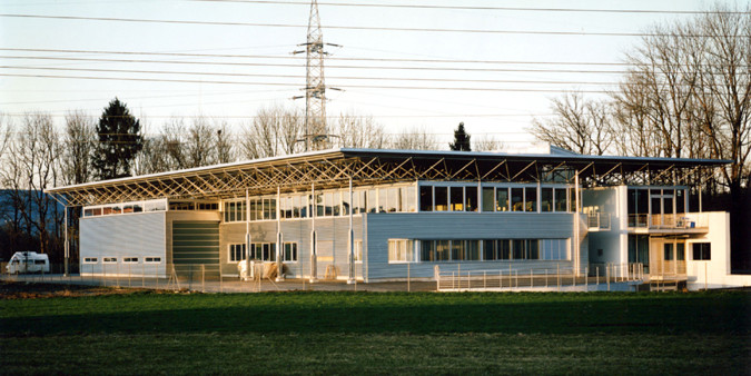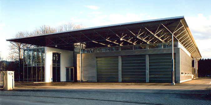 Auf einem Areal von über 5000 m² wurde in konstruktivem Stahlbau ein Betriebsgebäude für die Firma Hale electronic, einem der bedeutend-sten europäischen Taxameterhersteller, errichtet. Jedem Unternehmensbereich ist ein architek-tonischer Raum zugeordnet, der im Gebäude-komplex eindeutig ablesbar ist. Eine Nord-Süd-orientierte "Mitarbeiterstraße" verbindet das langgestreckte, gemauerte und weiß verputzte Bürohaus mit dem größeren, innen in Sichtbeton und außen mit Wellblechverkleidung errichteten Werkstättenhaus. Das übergeordnete Dach besteht aus einem auf Stahlsäulen ruhenden Raumtrag-werk.