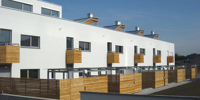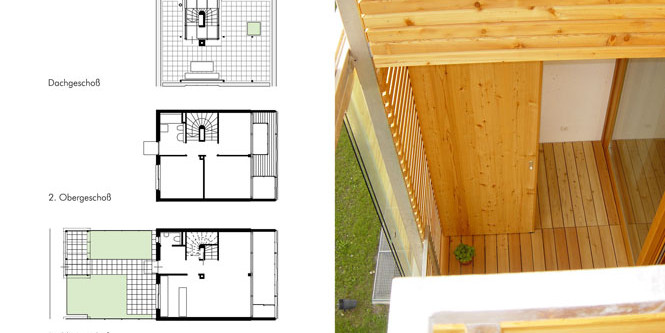 Gemeinsam mit den Projekten der Architektinnen Spannberger und Voss-Geiger wurde 1996 der 1. Preis des Wettbewerbes unter dem Motto "Frauen schaffen Wohnqualität - alltagsgerechtes Bauen" gewonnen. Ziel war es, ein neues Lebensgefühl betreffend Arbeiten, Wohnen, Kinderbetreuung und Freizeitgestaltung zu ermöglichen. Im Laufe der Realisierung kam es zu einer Verlagerung der Nutzung vom alltagsgerecht geplanten Wohnbau zum Gesundheitszentrum mit medizinischen Praxen und Apotheke. Die verbliebenen Maisonettewohnungen haben den Charakter von Reihenhäusern und besitzen mit Gartenanteil, Dachterrasse, zweigeschoßiger Glasveranda und Balkonen eine hohe Wohnqualität.