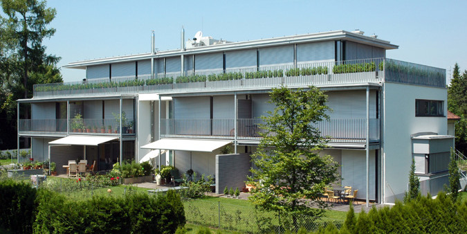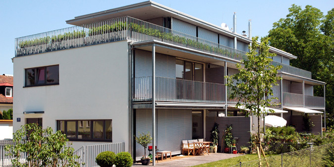Im Süden Salzburgs wurde ein Mehrfamilienhaus mit fünf Wohneinheiten in Massivbauweise errichtet. Der Ost-West-gerichtete Baukörper verfügt über zwei Vollgeschoße, ein zurück-gesetztes, mit einem Flachdach versehenes Dachgeschoß sowie eine Tiefgarage. Die nach Süden orientierten, als Maisonetten konzipierten Einheiten verfügen jeweils über Terrassen und eigenen Gartenanteil im EG sowie Balkone im OG. Ein mittig im Gebäude angeordneter Treppen- und Aufzugskern erschließt eine großzügige Penthouse-Wohnung mit umlaufender Terrasse im Dachgeschoß. Wesentlich für die besonders hohe Wohnqualität war die Berücksichtigung individueller Wünsche der Eigentümer.
